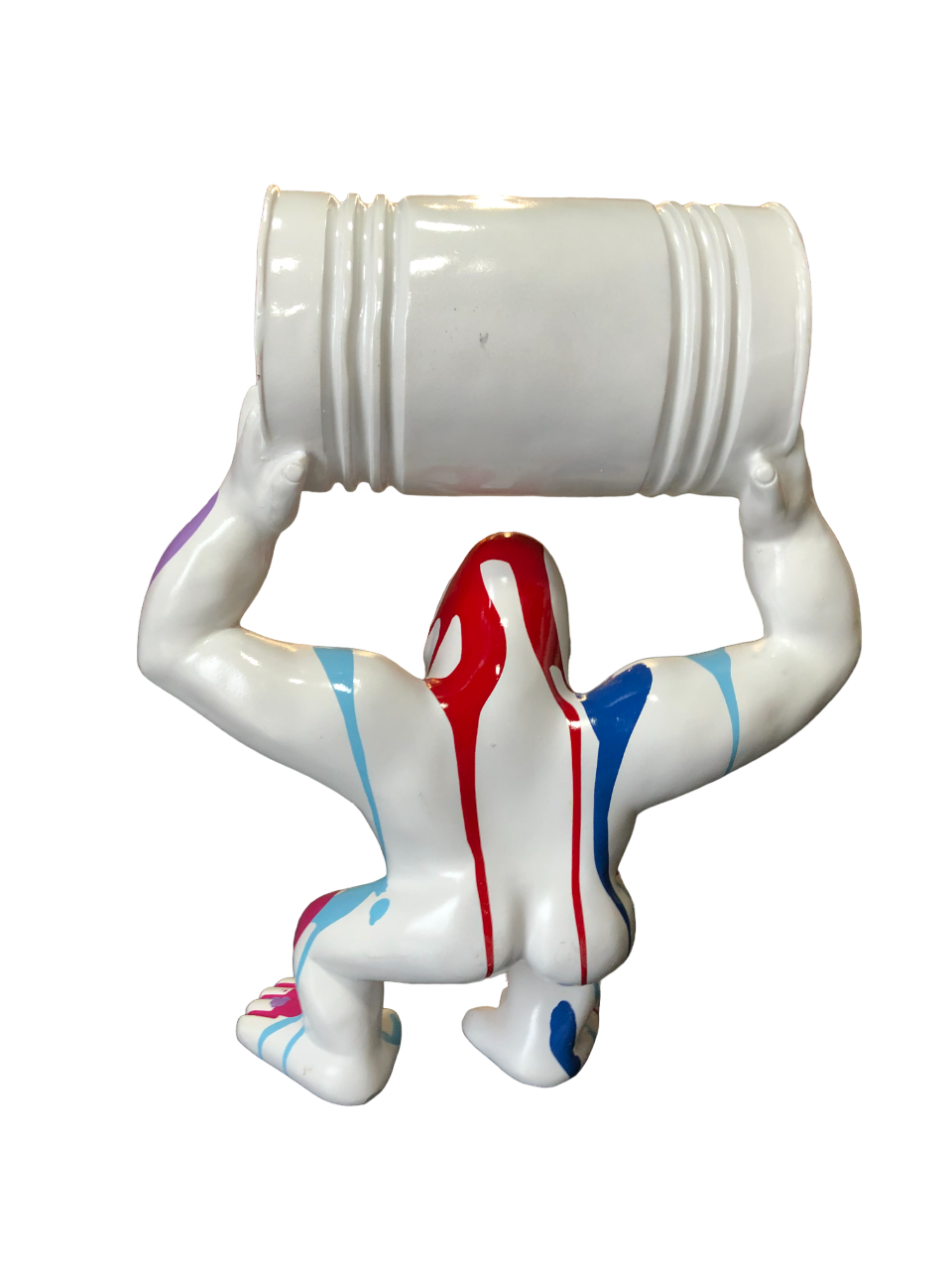 STATUE DE GORILE EN RÉSINE AVEC ÉLÉPHANT BLANC ET COLORÉ