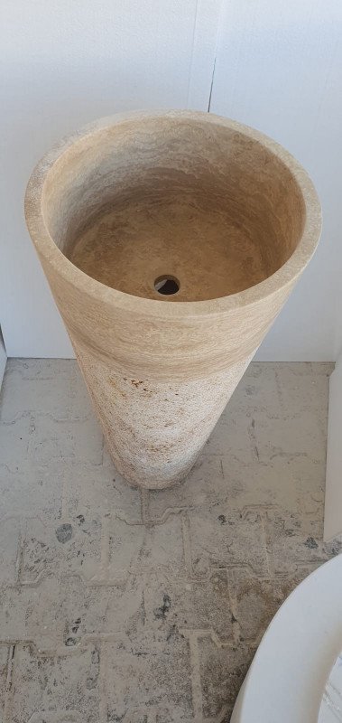 Évier festonné en travertin vertical light 42 x 42 x 90 cm