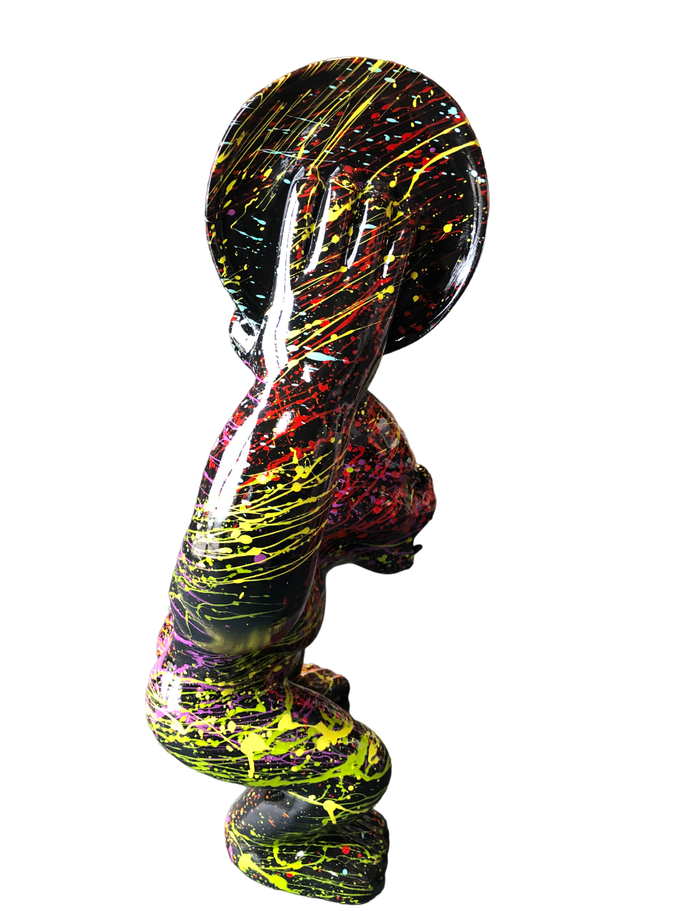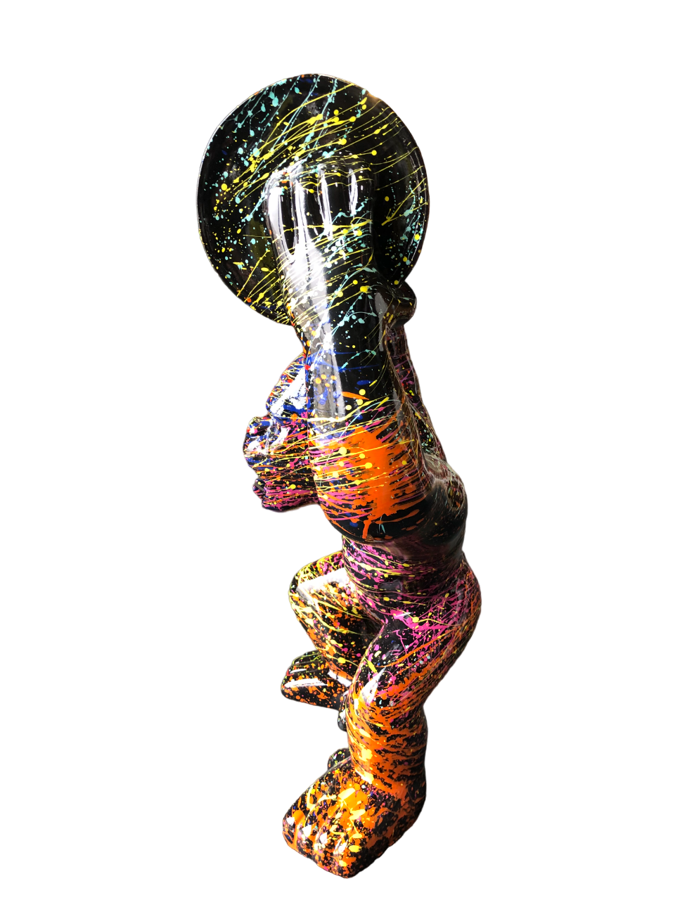 Statue en résine d'un Gorille ORIGAMI avec boîte poubelle noir/couleur/or - Résine fibre