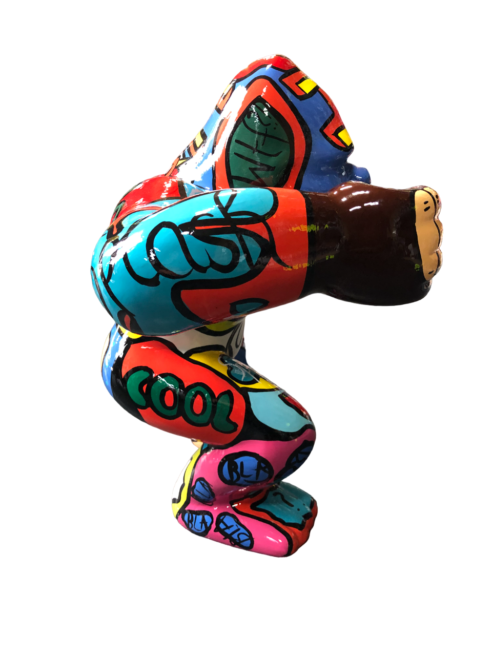 Statue en résine d'un Gorille ORIGAMI avec coupelle GRAFFITI - Résine fibre