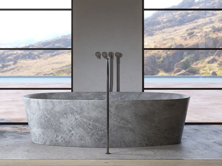 La beauté des baignoires en pierre naturelle établit un nouveau standard dans la mode des baignoires dans toute l’Europe. La baignoire en travertin Silver apporte de l'air frais et un pouvoir de séduction à tout type de salle de bains, quel que soit son style. Ainsi, nous pouvons avoir un ajustement parfait de ce produit naturel dans des arrangements méditerranéens classiques, élégants, art-déco, shabby chic et rustiques. En raison de la couleur grise et des accents de noir, la gamme chromatique des produits auxquels cette baignoire peut être associée est très large: du blanc au noir, du gris au vert, au crème ou au jaune …