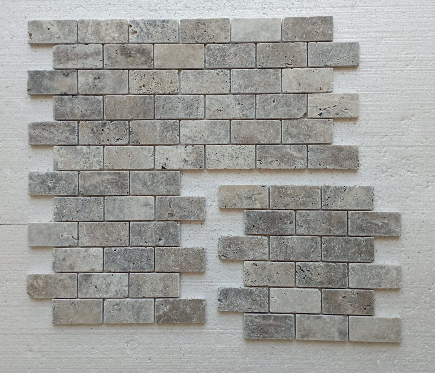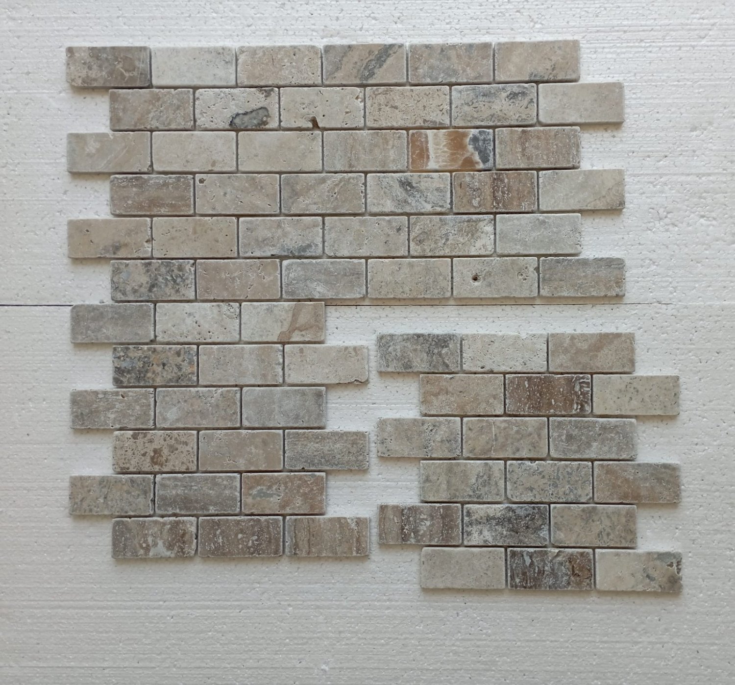 Les mosaïques sont des petites tuiles de pierre de différentes tailles, collées sur un filet de 30.5x30.5 cm. Nos ventes sont basées sur chaque unité de 30.5x30.5 cm.