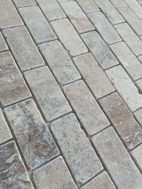 Mosaïque En Travertin Argenté Adouci 30,5x30,5 cm